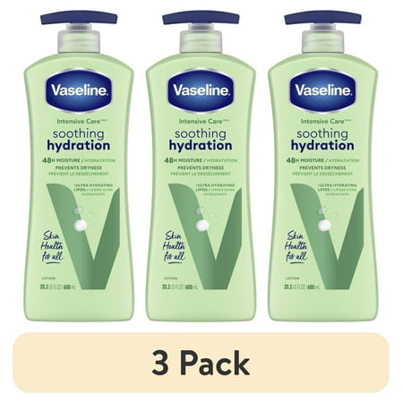 (3 pack) Vaseline Intensive Care Body Lotion Soothing Hydration for Women Dry Skin, 20.3 oz