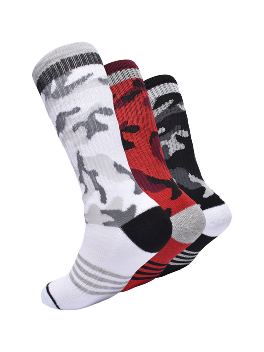 Athletic Works Boys Printed Crew Socks, 3-Pack Sock Shoe Size (4-8.5) - L (3-9)